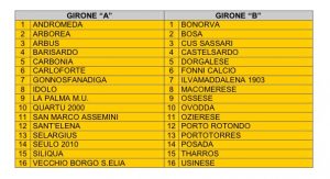PROMOZIONE. Trenta delle trentuno aventi diritto si sono iscritte (ha rinunciato la Società S.E.F Tempio). Vista l’ammissione al Campionato di Eccellenza del Sorso 1930, seconda classificata nella graduatoria dei play-off di Promozione, e della esclusione da parte della Società S.E.F. Tempio al Campionato, il Consiglio Direttivo ha deliberato di assegnare i posti vacanti alle Società non aventi diritto Ovodda, Idolo e Gonnosfanadiga inserite al prima, seconda e terza nella graduatoria di merito.