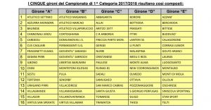 Ecco i cinque gironi della Prima: