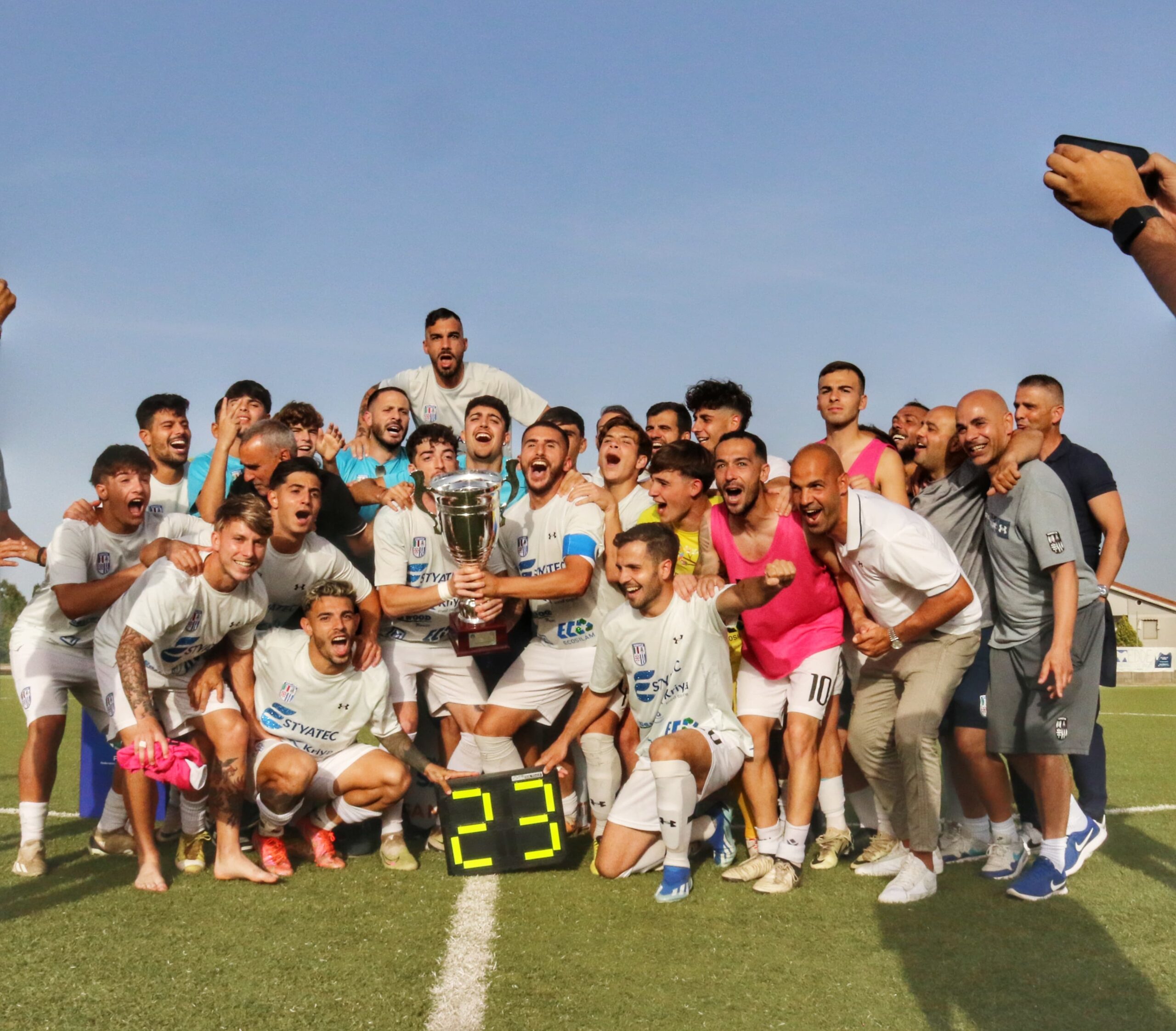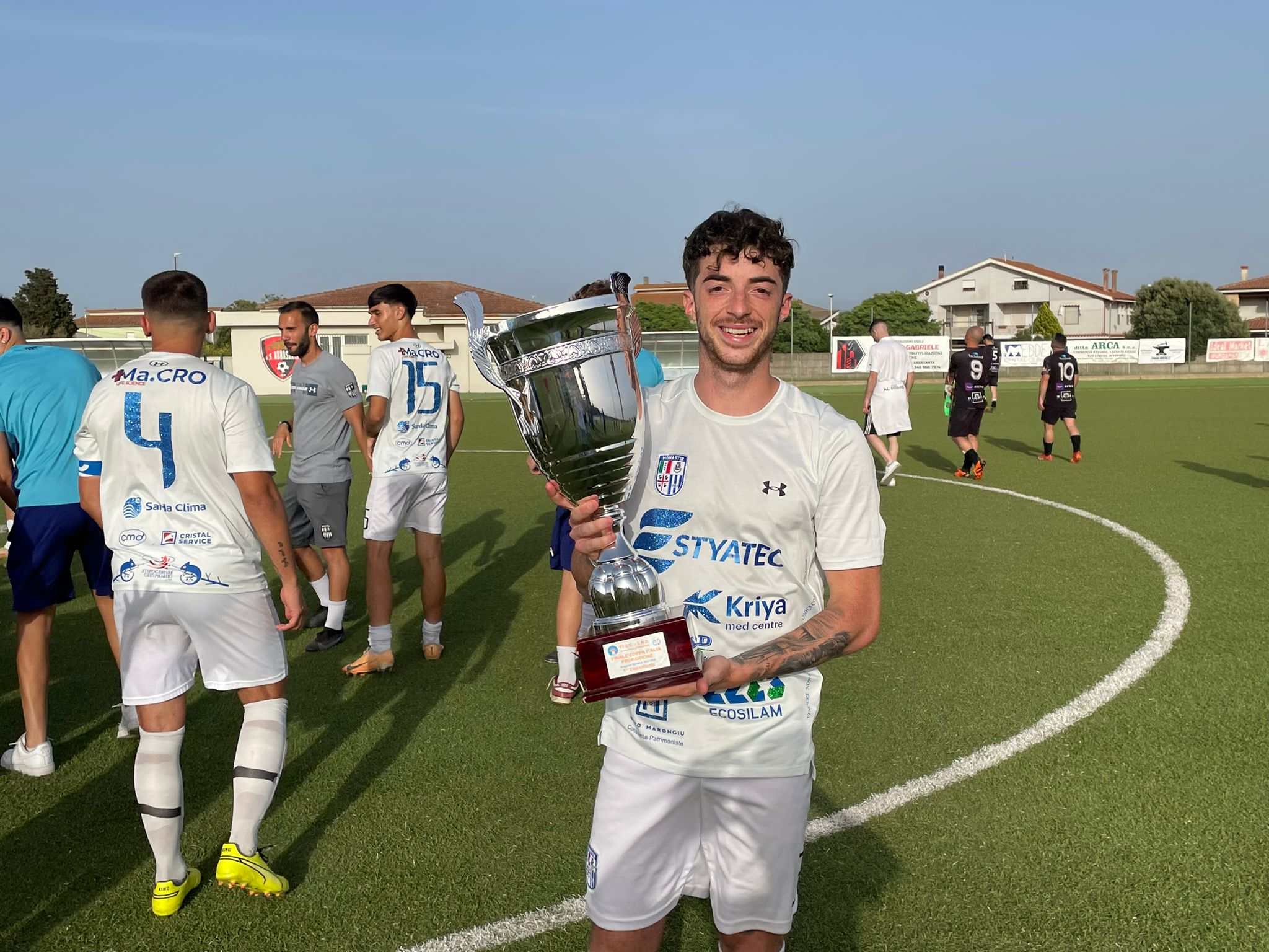 Dopo la vittoria del campionato i biancoblù completano una stagione da record aggiudicandosi il trofeo per la prima volta nella storia del club. La finale di Abbasanta contro la Lanteri Sassari termina 1-2 ai tempi supplementari , dopo che i tempi regolamentari erano finiti sullo 0-0. Nel primo tempo gol annullato a Ragatzu in maniera più che dubbia, mentre dall’altra parte è bravissimo Firinu a salvare su Usai lanciato a rete. Nella ripresa il punteggio non si sblocca, con la partita interrotta sette minuti per un bruttissimo colpo subito da D’Agostino, che riceve un calcio al volto da un avversario (solo ammonito) ed è costretto a lasciare in campo in ambulanza. Nei supplementari passa la Lanteri Sassari, al 99’ con un destro dal limite di Dettori. Ma subito dopo Pinna entra in area da destra, va in dribbling ed è buttato giù: rigore e seconda ammonizione proprio per Dettori. Dal dischetto Ragatzu fa 45 in stagione, dopo i 40 gol in campionato, e pareggia al 104’. Con l’uomo in più la squadra di Marcello Angheleddu si prende la coppa al 118’: eccezionale punizione di Masia dai 25 metri, praticamente all’incrocio, per il gol del trionfo